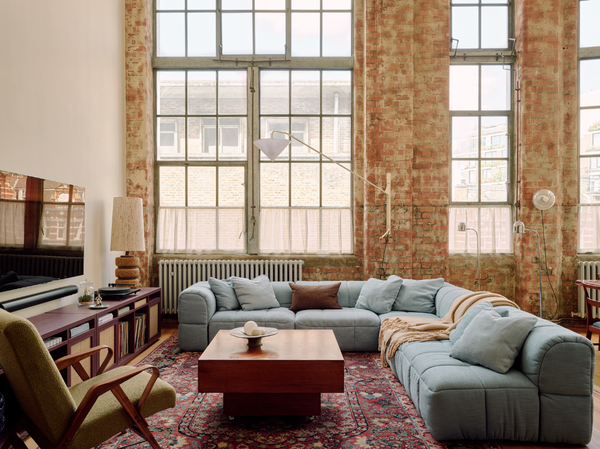 domino • 21st December 2025 Lilac Paint and a Powder Blue Sofa Soften Up This Industrial London Loft It's channeling a cool photographer's loft in the '90s.